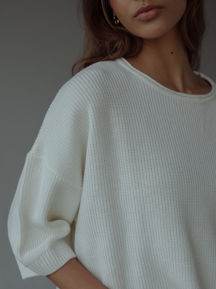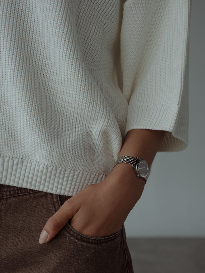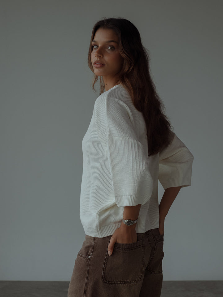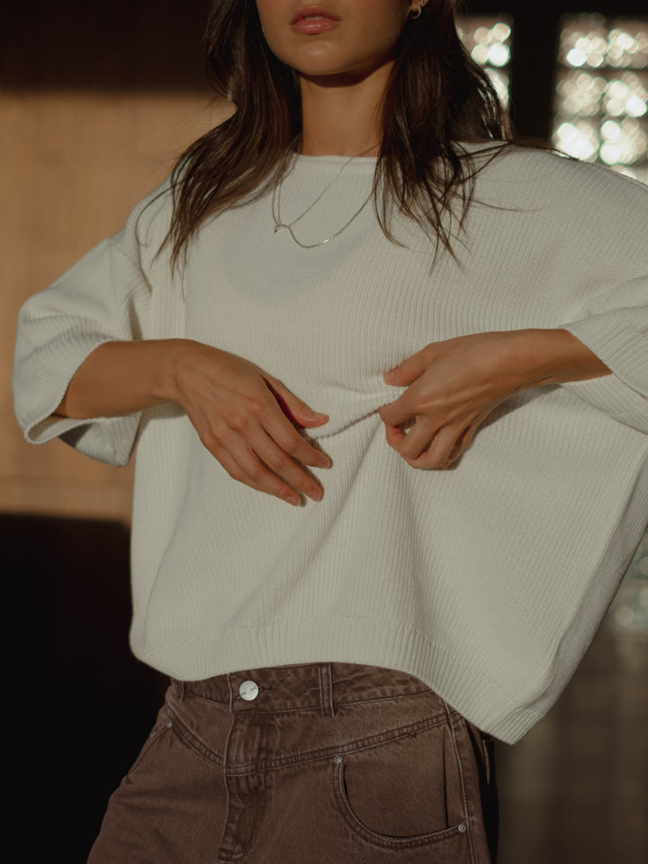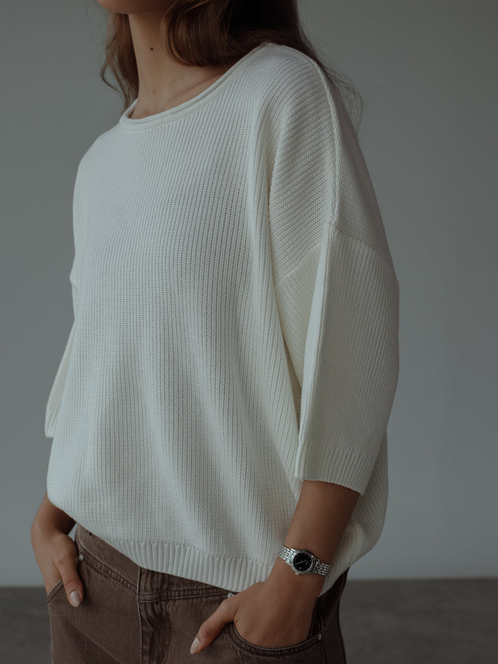 Everyday essentials, That’s the way our new woven tee with short sleeves in ecru, is. A must-have. Match it up with your favorite jeans and pants.