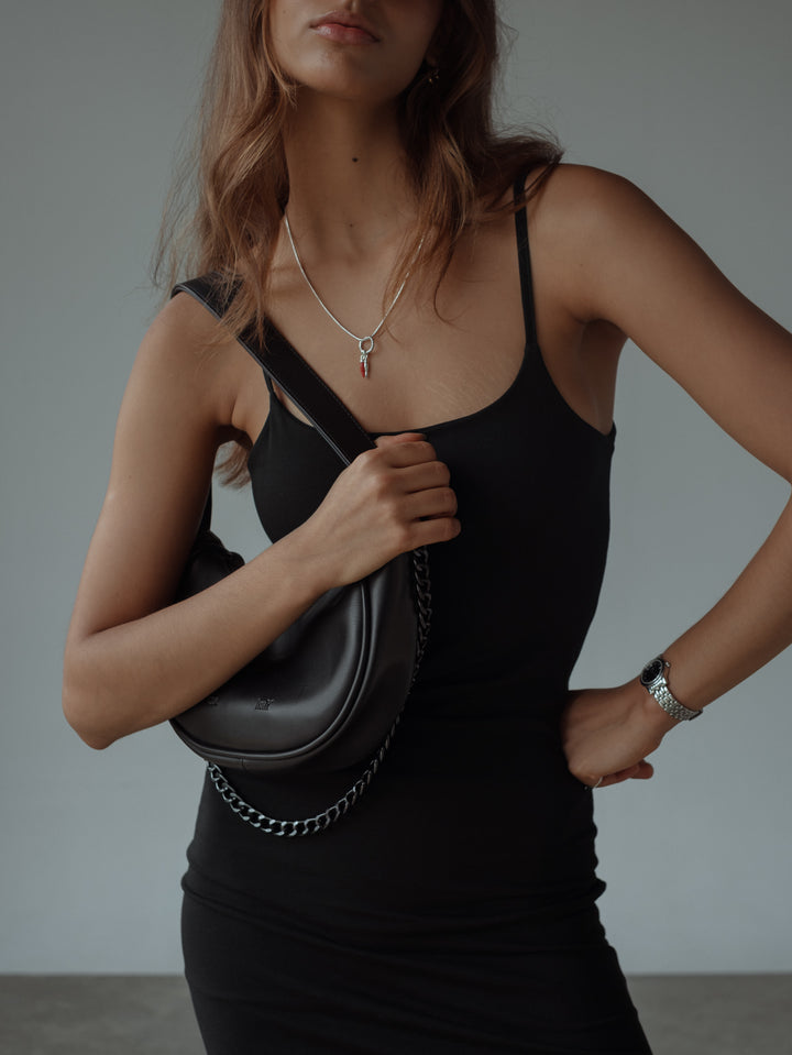 Perfect match. That’s it our new bag. An accessory in black designed with zipper, and black chain making it look aesthetic. A timeless complement for any occasion. Match it up with your favorite looks.