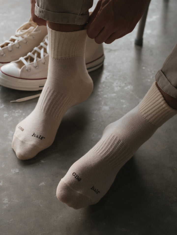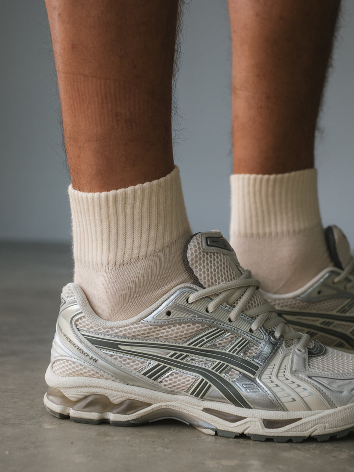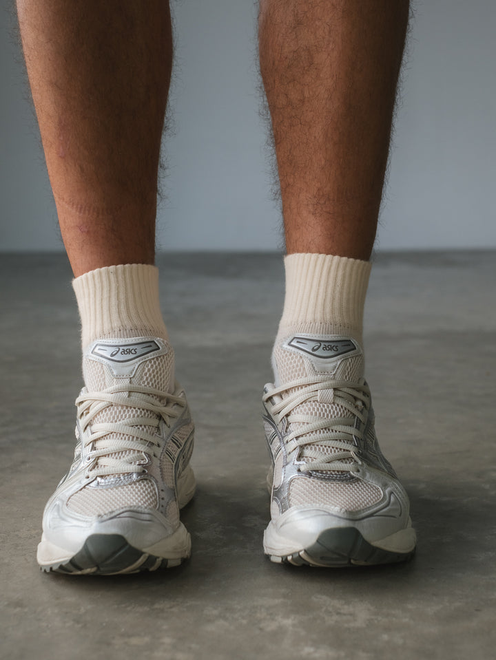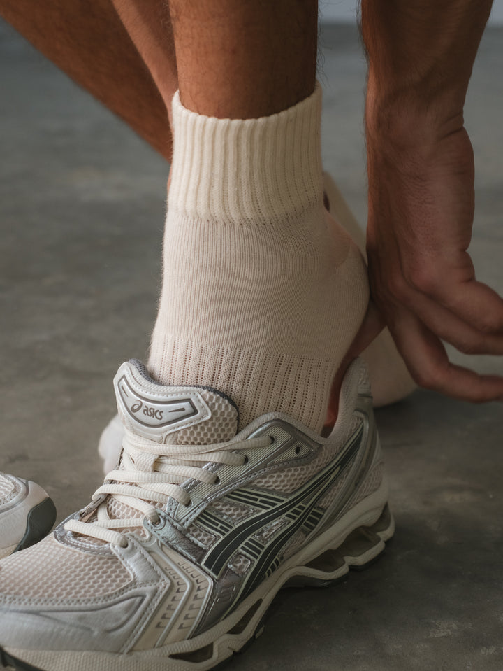 Feet in clouds, that’s how our cream running socks feel. Perfect to match with your sporty looks.