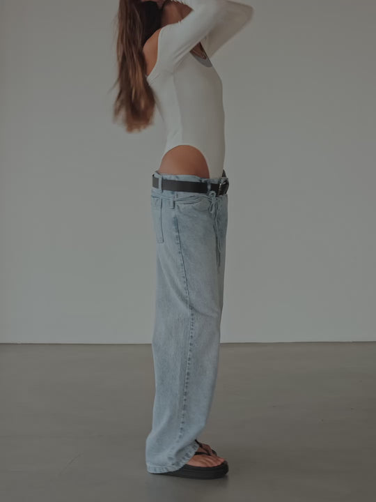 Elevated basics. New long sleeve body in creamy color designed with a jaspe gray inner top. It is ideal to elevate your looks. Match this piece up with ourjeans and pants.