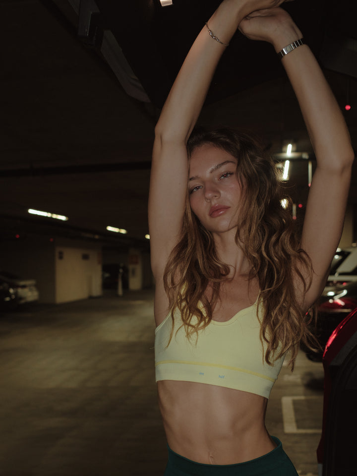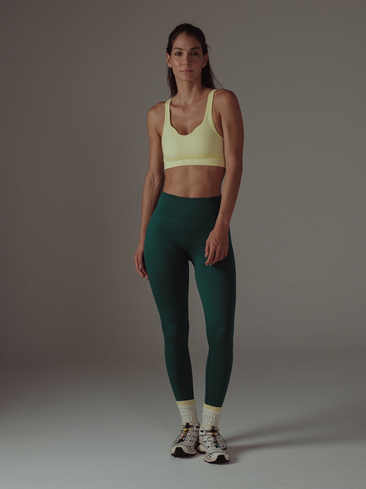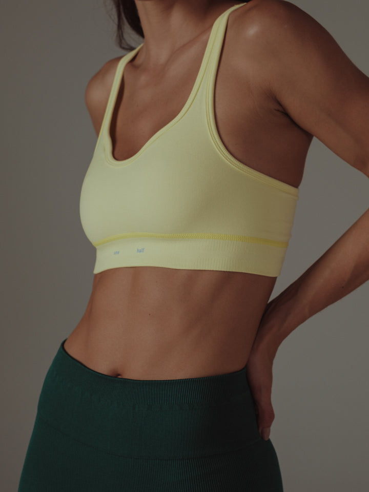 Classic with a twist. New yellow crop top designed with front U cleavage and back opening. An ideal garment for your training sessions. Match it up with our sports leggings.