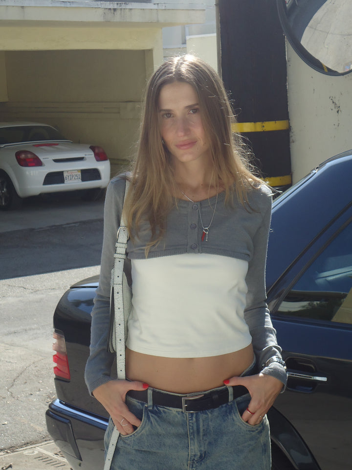 Get your look done with our new long sleeve knit cardigan in grey. Designed with front buttons it is ideal to elevate your looks. It goes great with our women’s sports clothes.