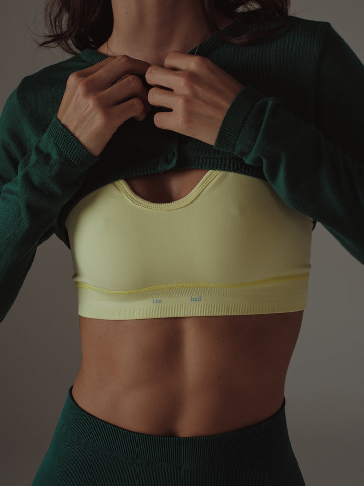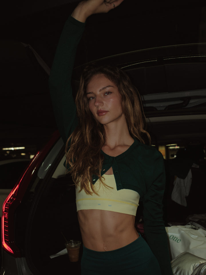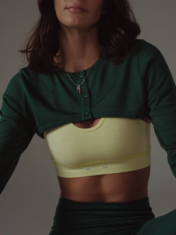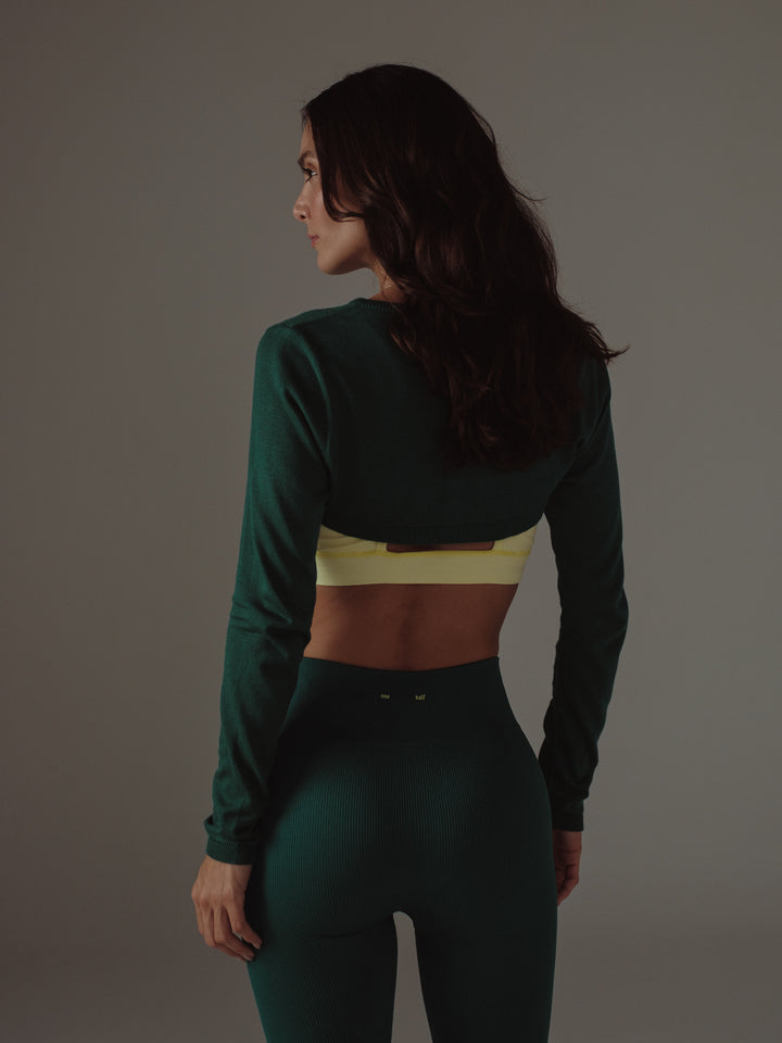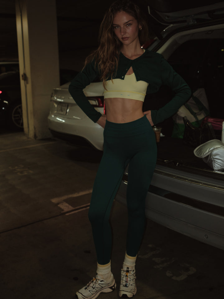 Get your look done with our new long sleeve knit cardigan in pine green. Designed with front buttons it is ideal to elevate your looks. It goes great with our women’s sports clothes.