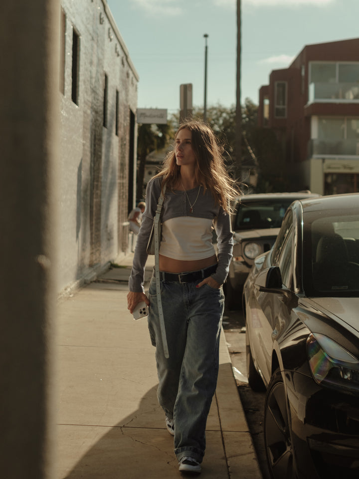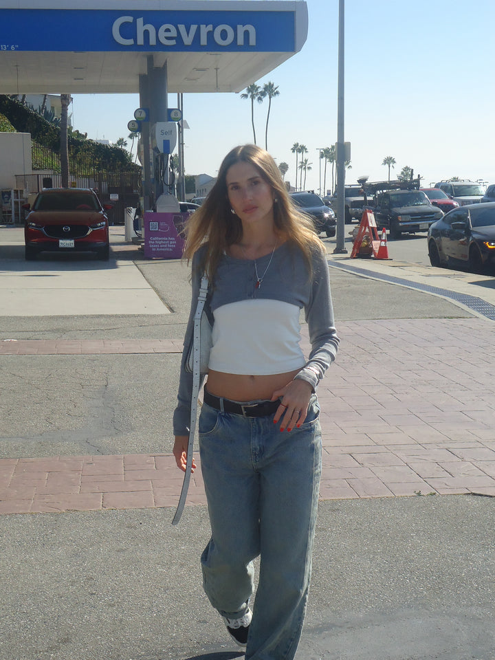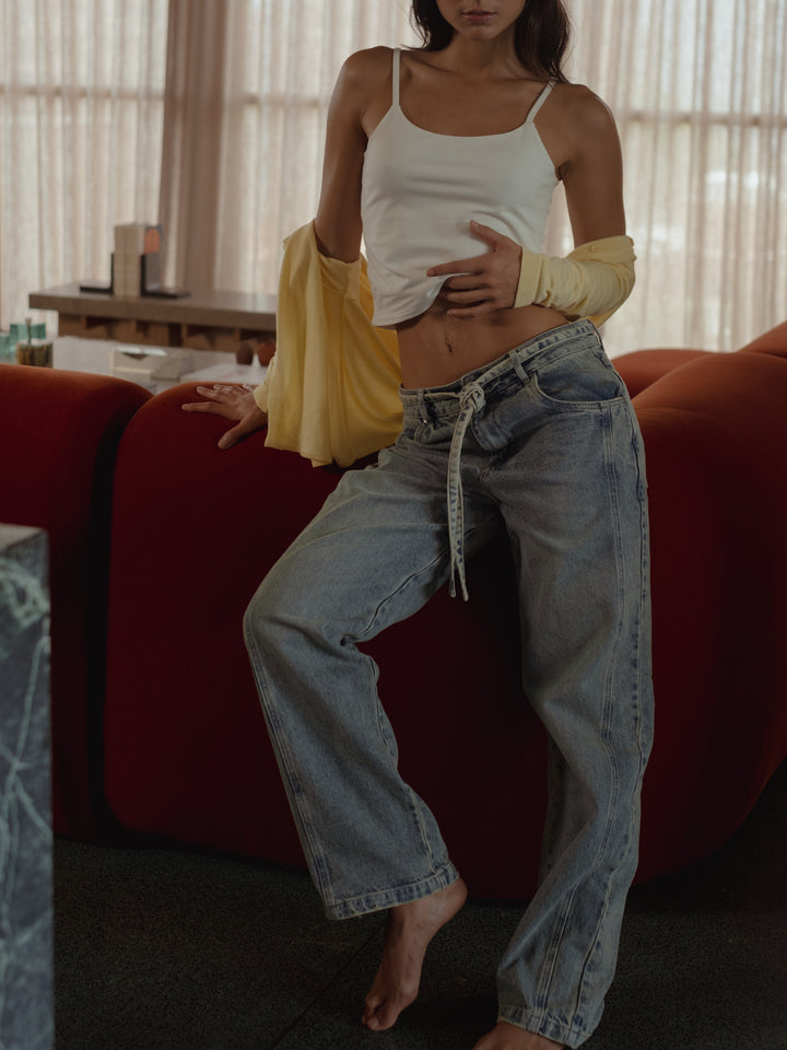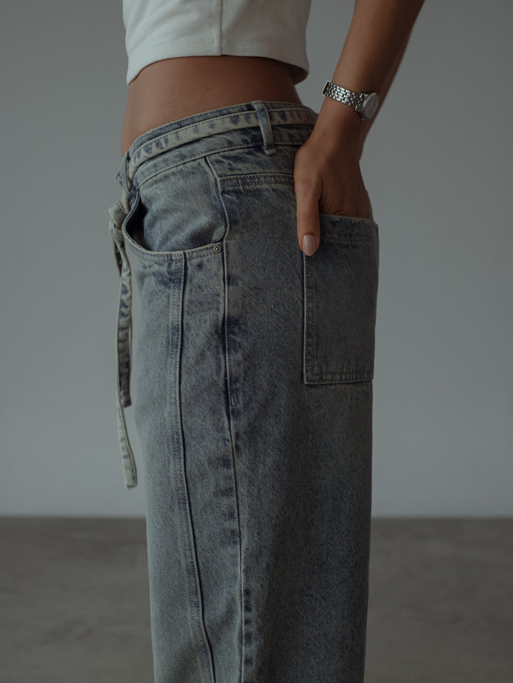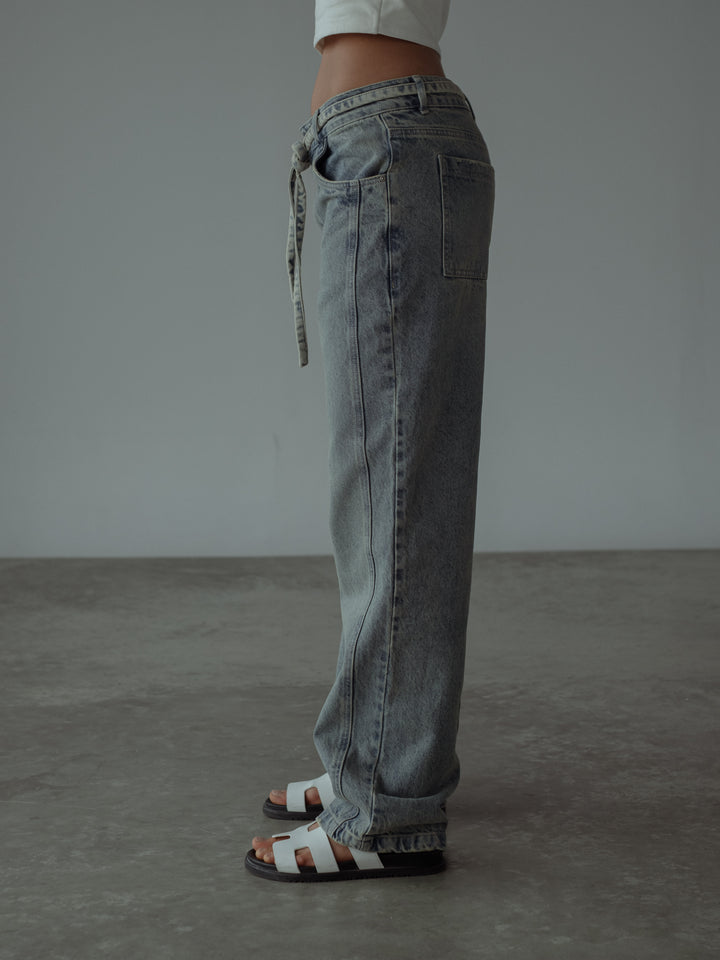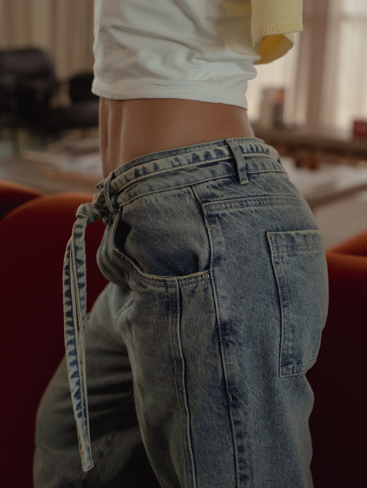 Get your look done with our new mid-rise vintage light blue jeans. Designed with straight silhouette and belt, it is ideal for your aesthetic looks. Match this garment up with our bodies.