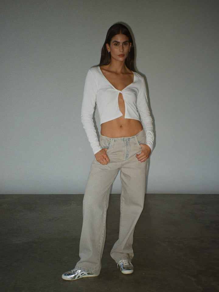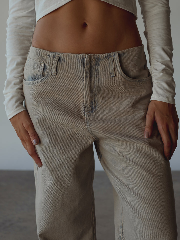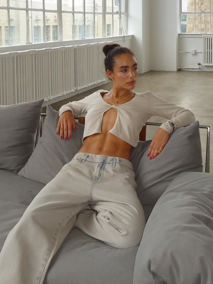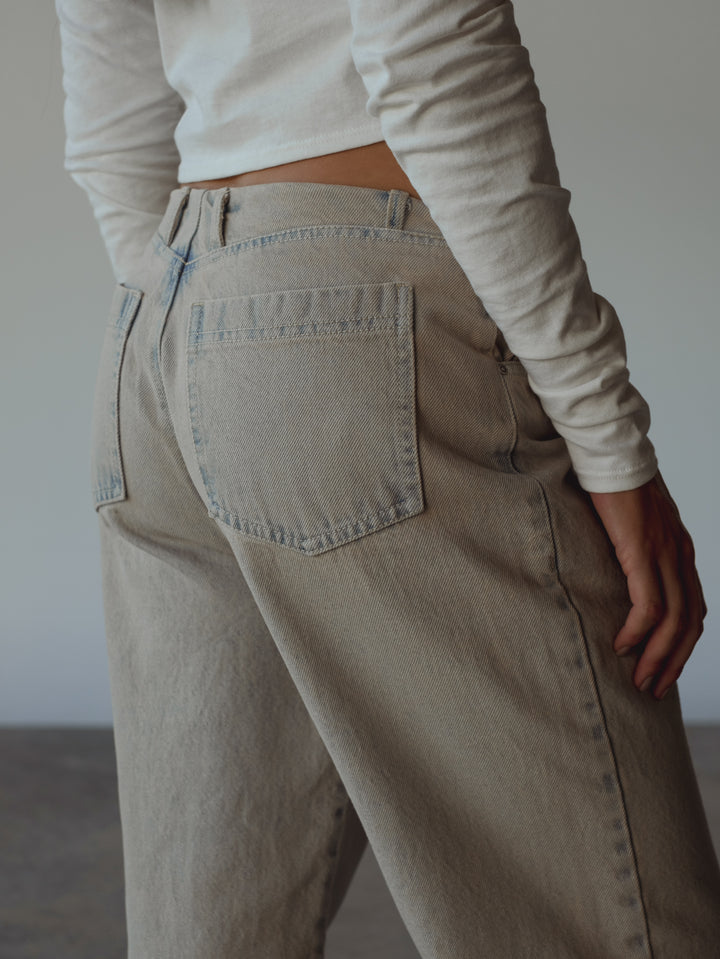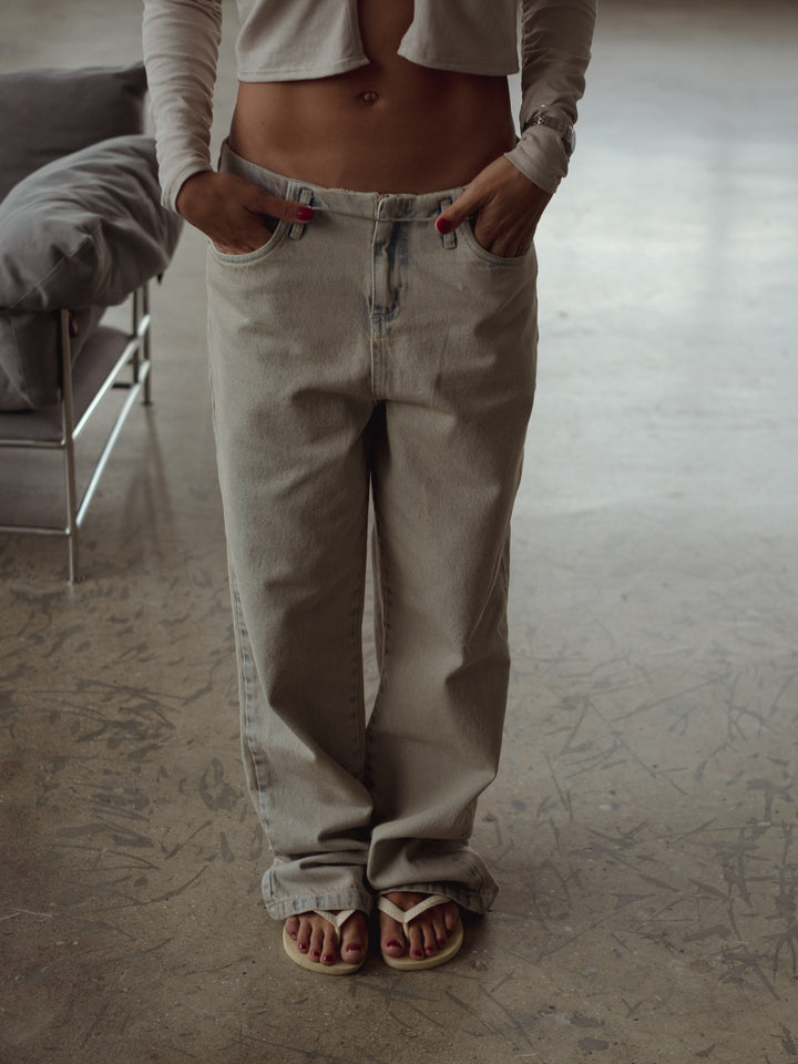 Your aesthetic look is here! New vintage pink jean. A garment designed without waistband but with a perfect fit adapting to your silhouette. Match it up with our bodies.