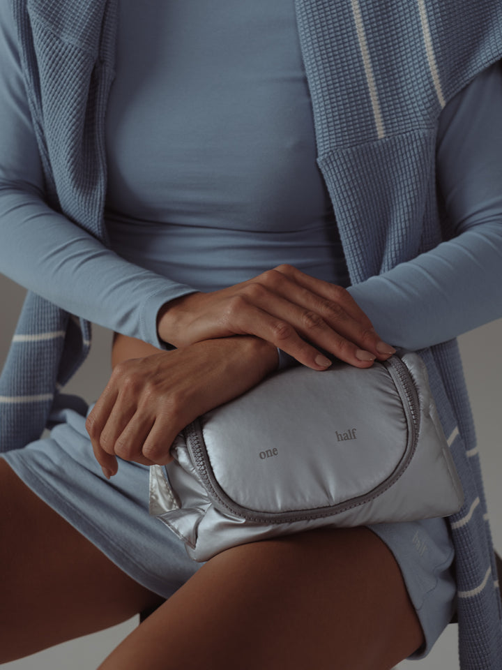 Your trip starts here. New gray makeup bag. An accessory designed with inner compartments to take your essentials wherever you go. Perfect match with our bags and tote bags.