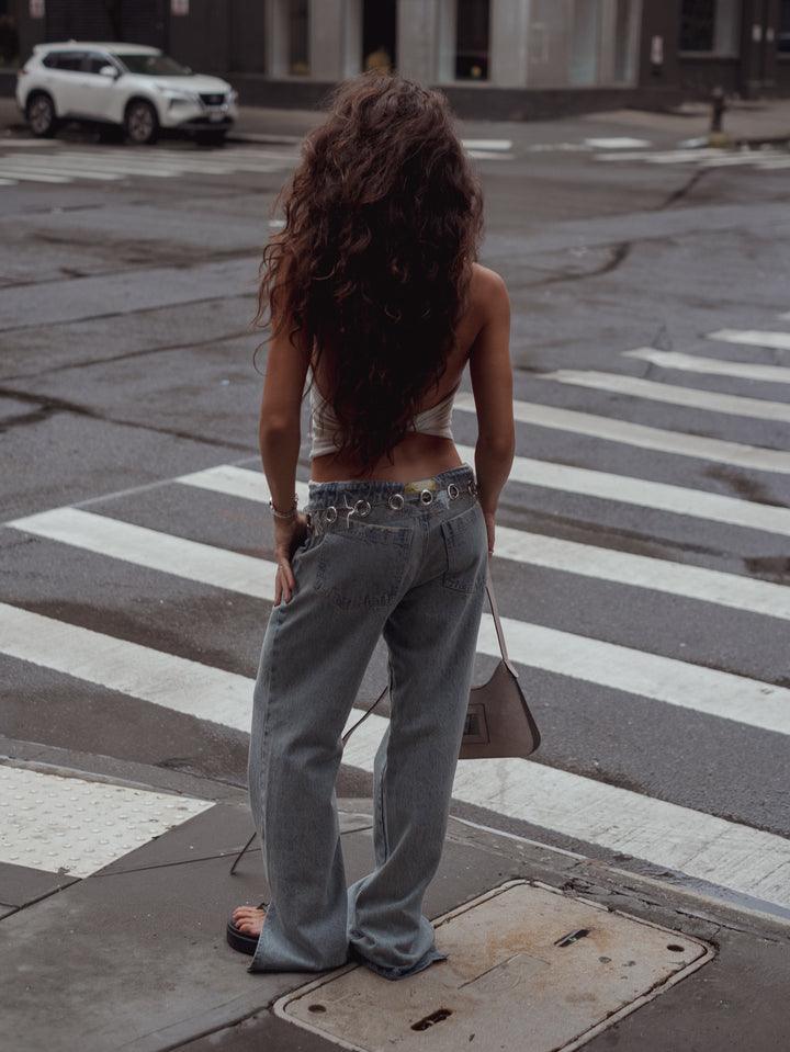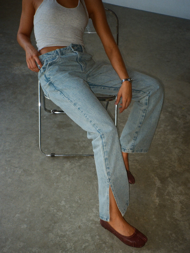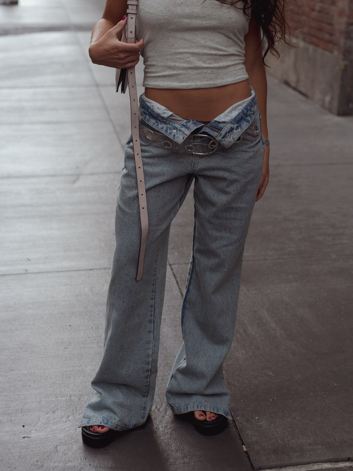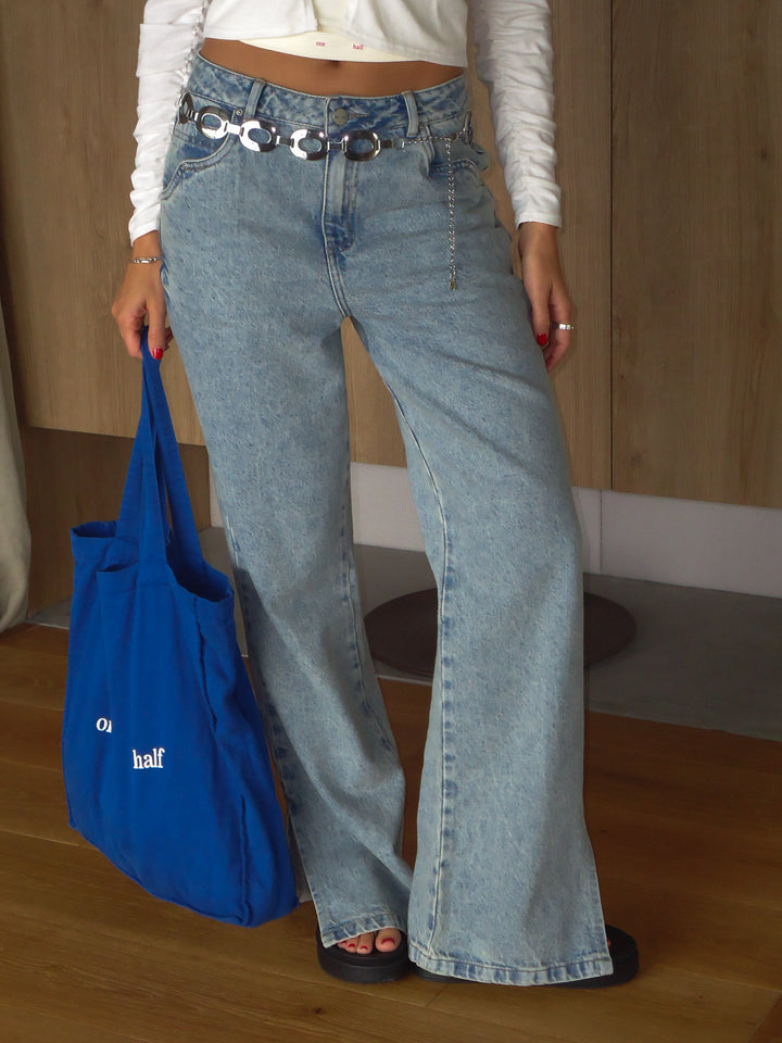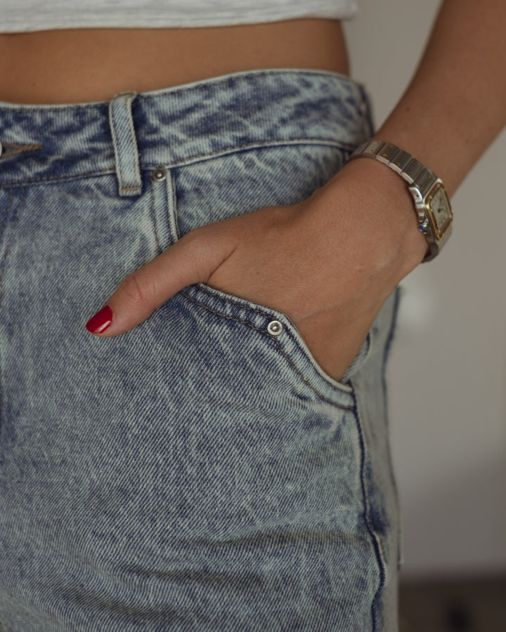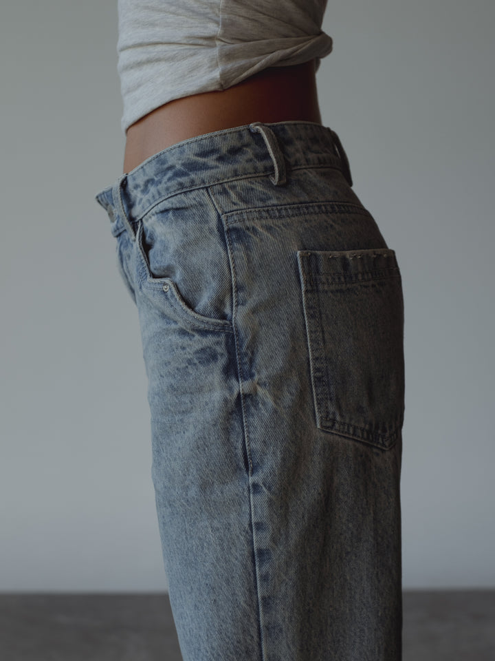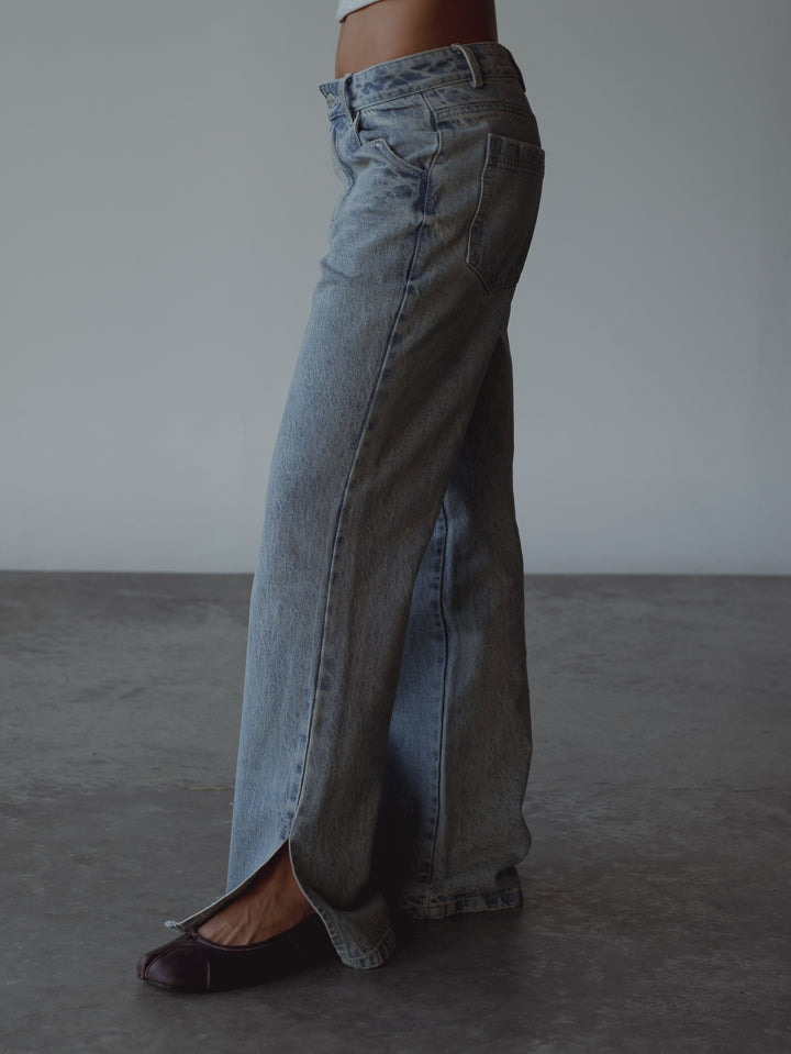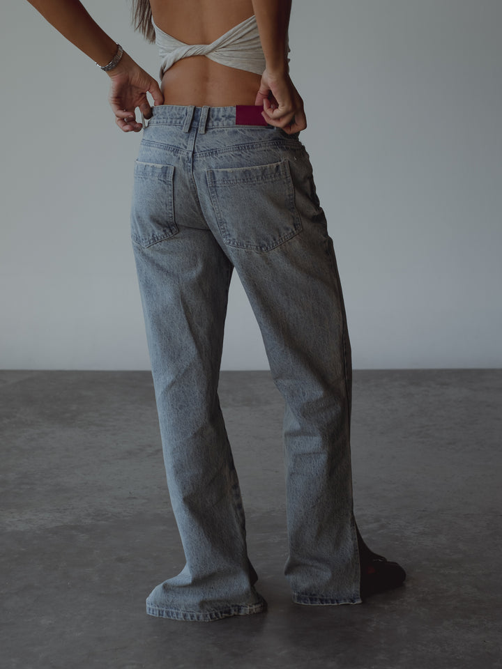Get your look done with our new mid-rise jeans in blue. Designed with openings on the boots and front curvy pockets making it look aesthetic. Match it up with our shirts and tees.