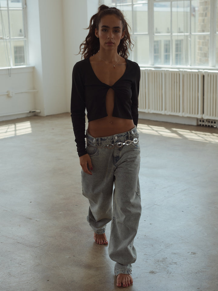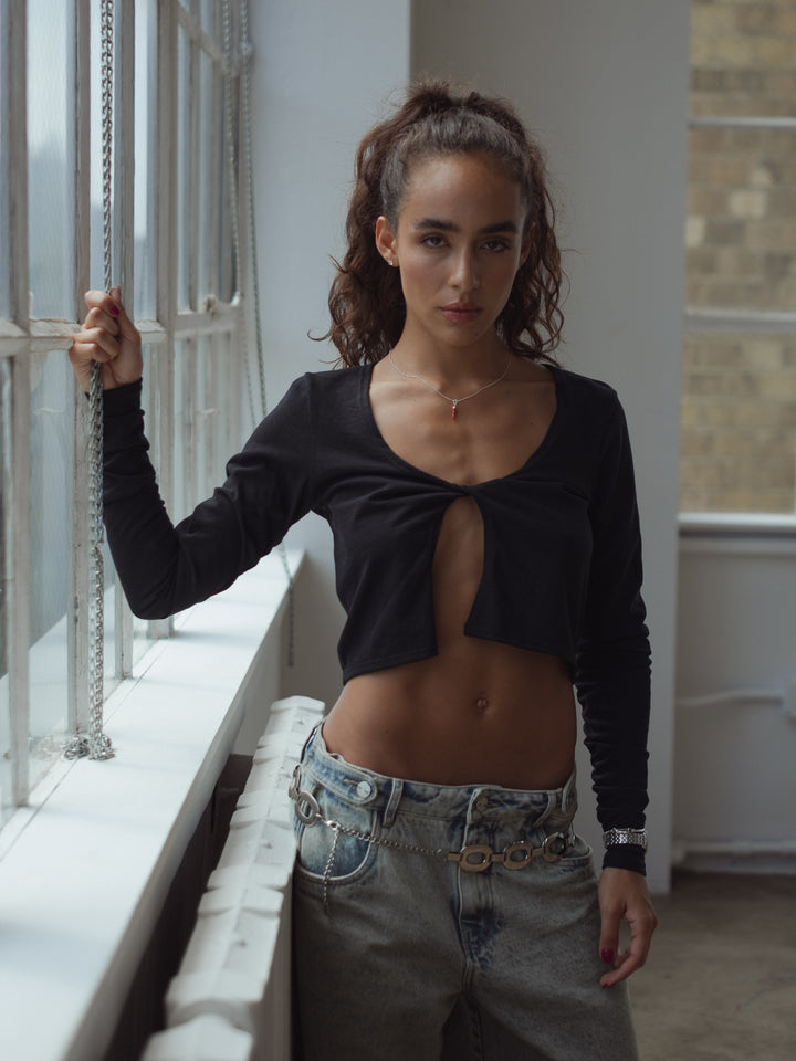 It’s all about the details! New long sleeve top in black. A garment designed with front square cleavage elevating your casual looks. Ideal to match with our jeans and pants.