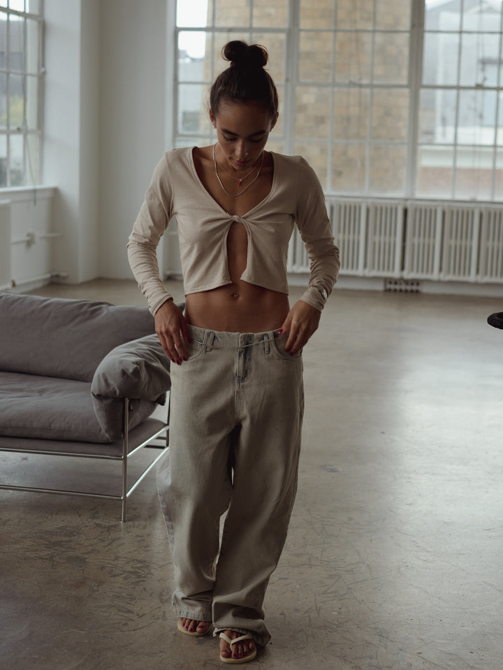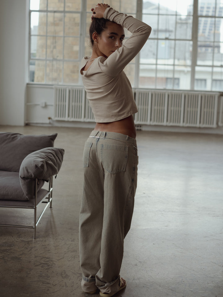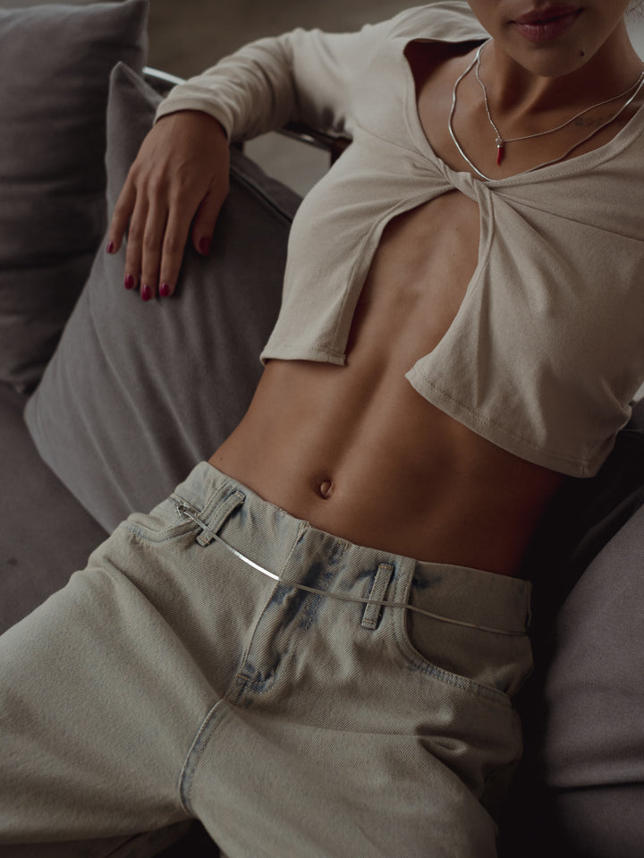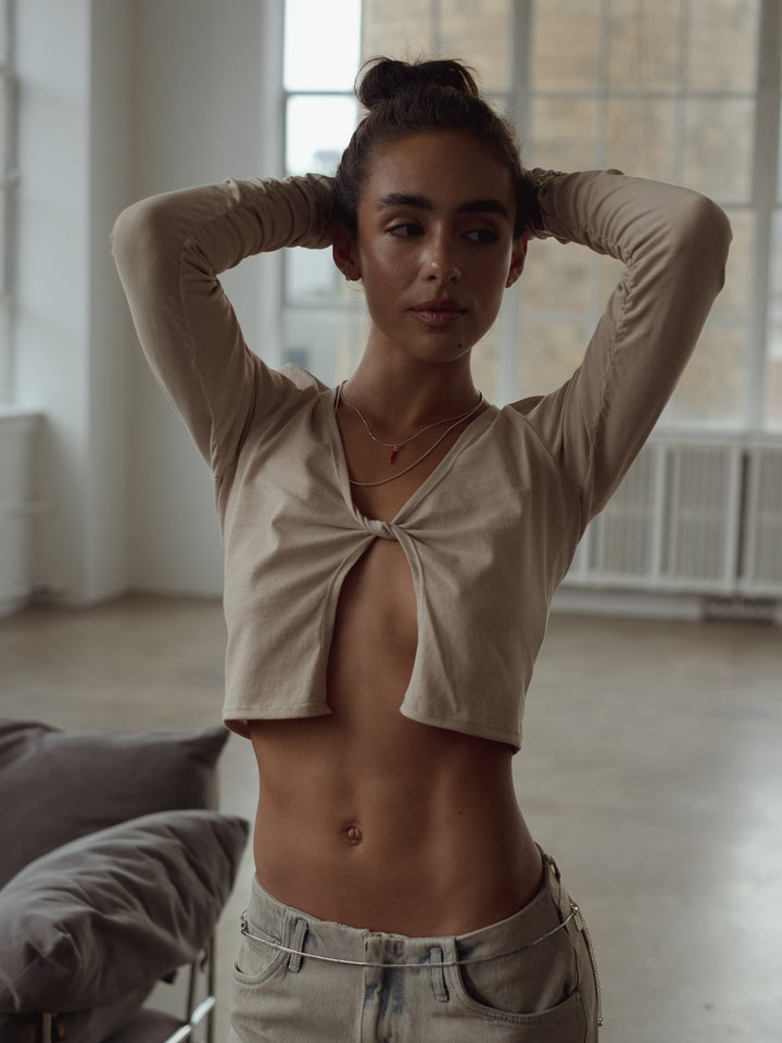 It’s all about the details! New long sleeve top in taupe. A garment designed with front square cleavage elevating your casual looks. Ideal to match with our jeans and pants.