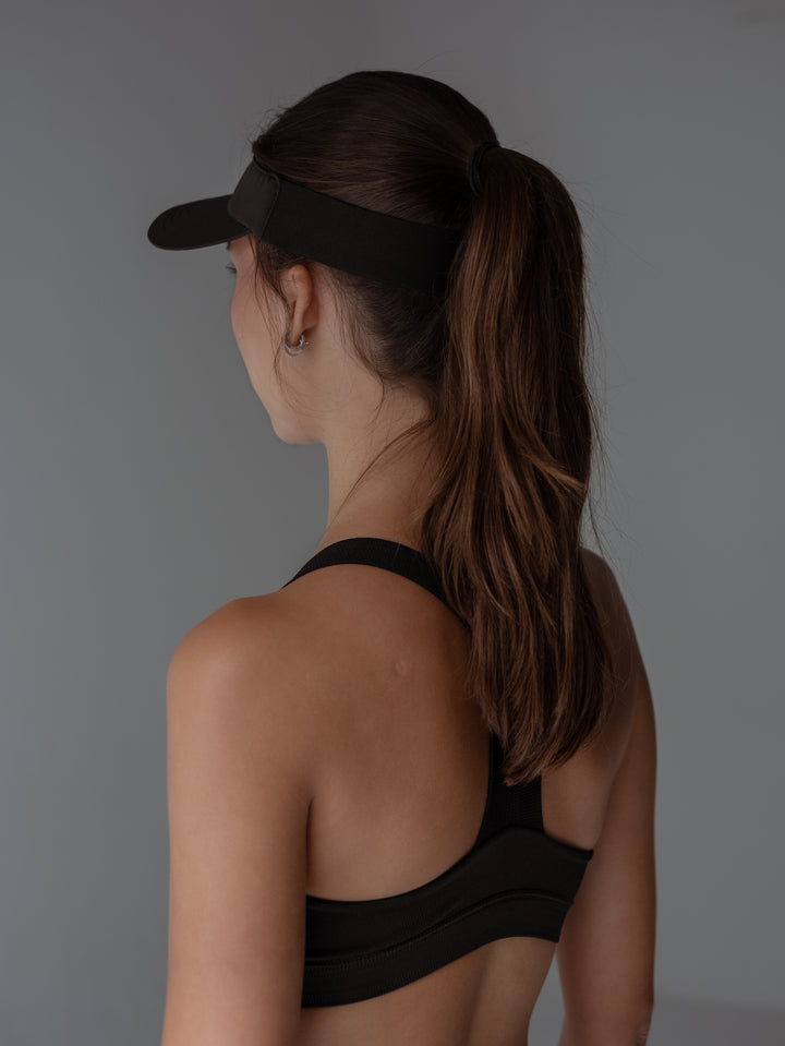 Back to the court with our new visor in black, mesh on the sides and printed logo on the front. This garment is ideal for working out outside. Perfect to wear with your athleisure looks.
