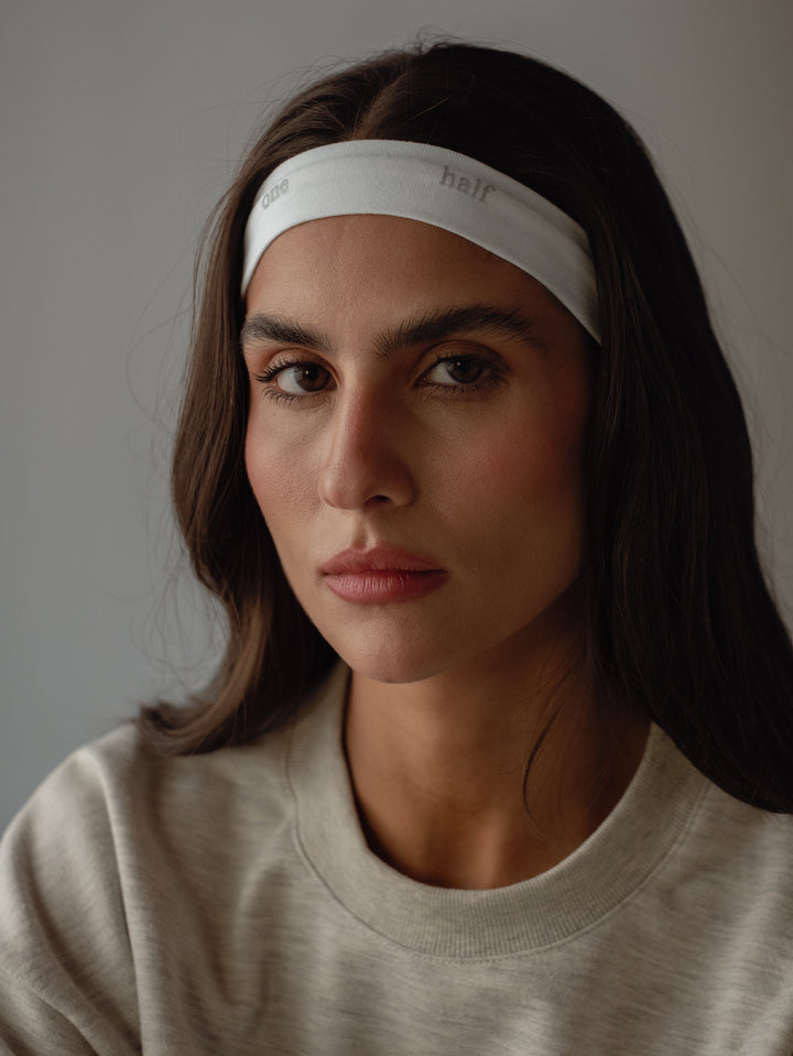 Meet your new go-to. New headband in ecru and “One Half” print on the front. A trendy garment ideal to match with your casual and sporty looks.Â