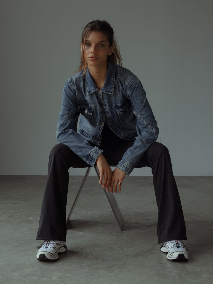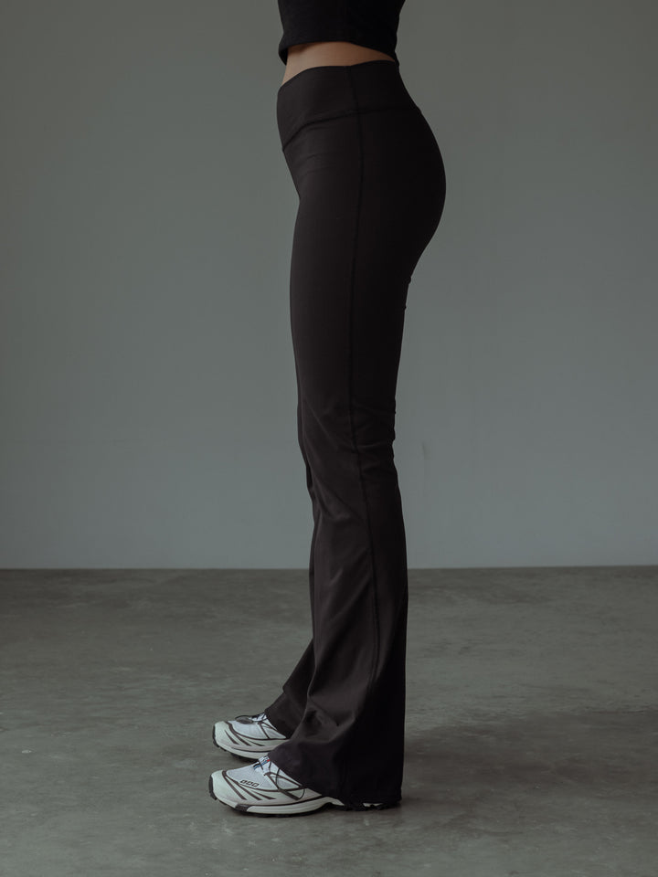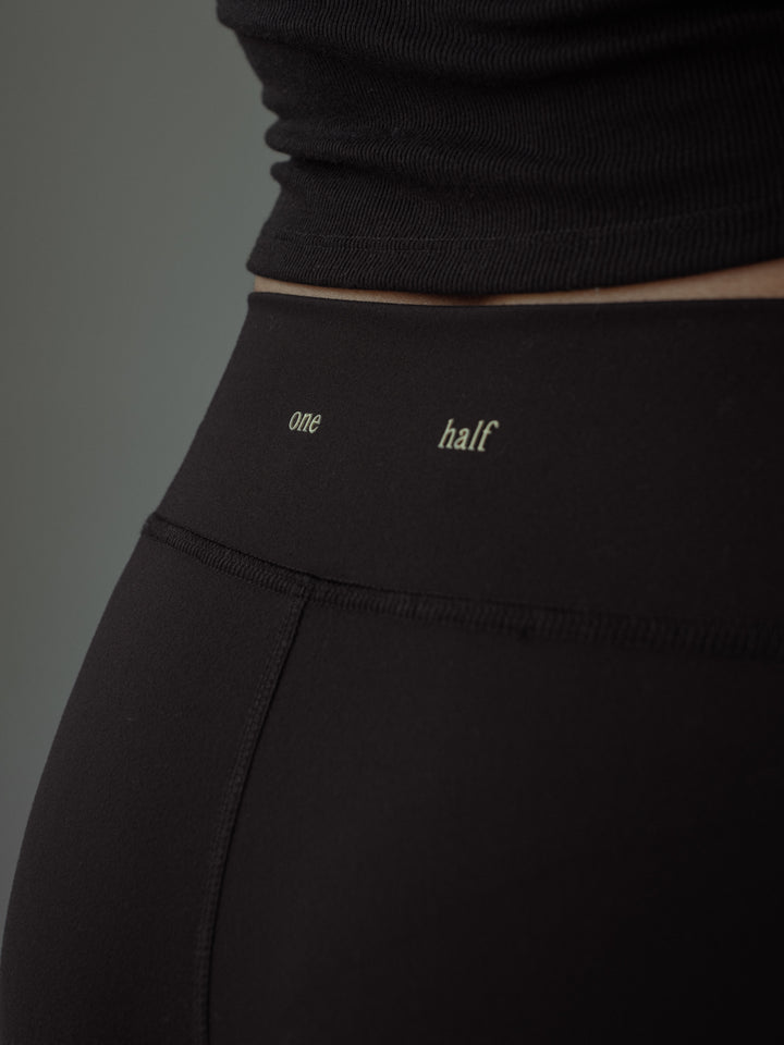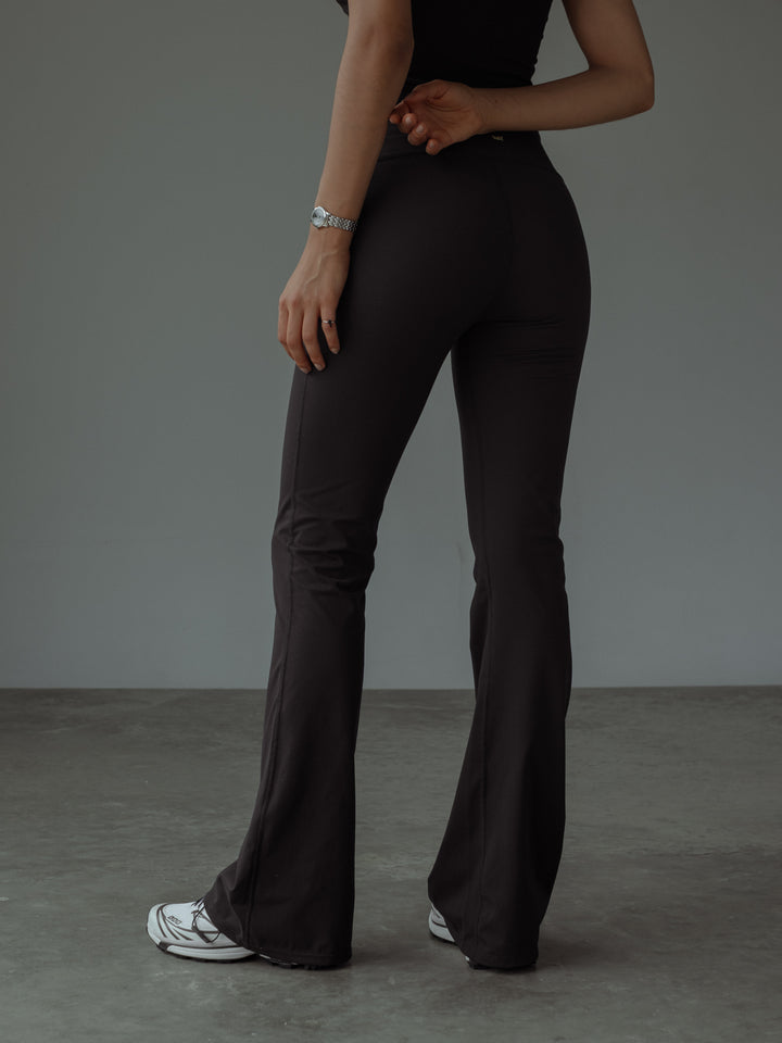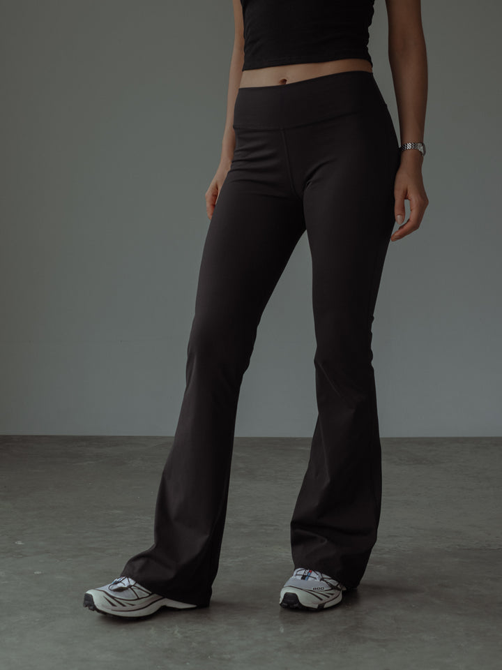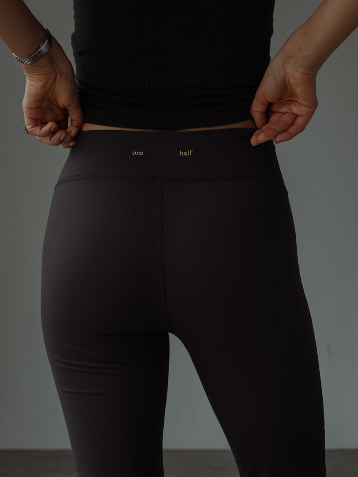 Get your look done with our new flare pants in black. Designed with soft texture, âOne Halfâ print on the back contrasting with the color of the garment. Perfect to wear with our womenâs crop tops.